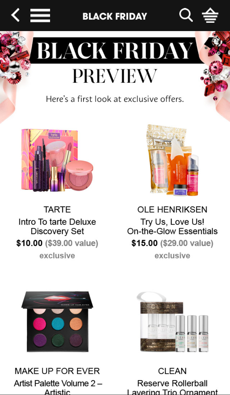 The next store on my list is Sephora or course! This year Sephora released a preview of their Black Friday Deals Exclusively on their App.